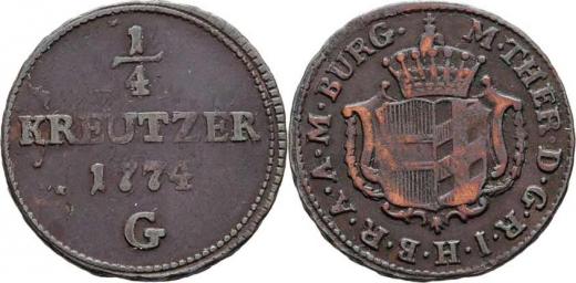 Cu 1/4 Krejcar 1774 G, Günzburg, N.148, 1.840g, nep.vady materiálu, patina R!