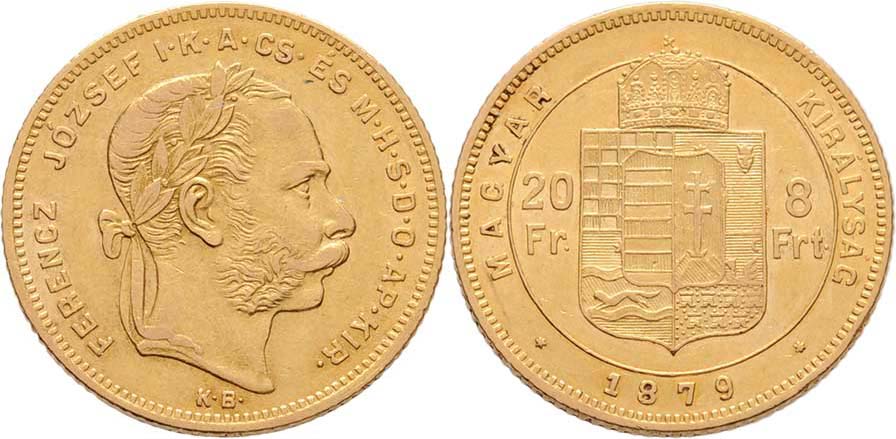 8 Zlatník 1879 KB, 6.423g, dr.hr., nep.rysky, pěkná patina