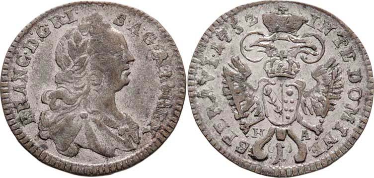 Ag Krejcar 1752 H-A, Hall, M-A.253, N.15, 0.824g, nep.nedor., nep.vady razidla, pěkná patina R!