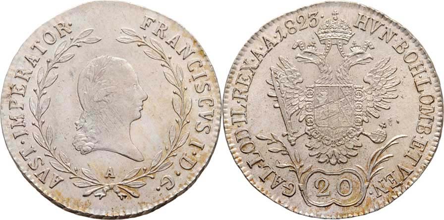 20 Krejcar 1823 A, Vídeň, 6.708g, nep.just., krásná patina