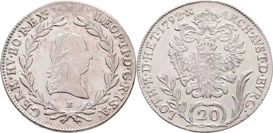 20 Krejcar 1792 B, Kremnica, P.16, Husz.1913, 6.219g, mírně just., nep.vada razidla, nep.rysky, patina