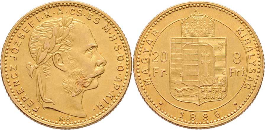 8 Zlatník 1886 KB, 6.441g, nep.hr., nep.rysky, pěkná patina, téměř