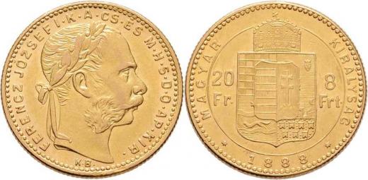 8 Zlatník 1888 KB, 6.438g, nep.hr., nep.rysky, pěkná patina, téměř