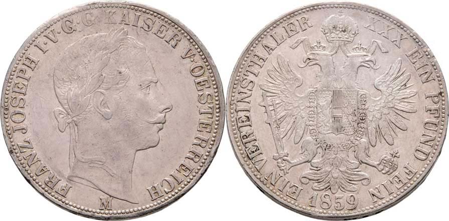 Tolar spolkový 1859 M, 18.555g, hr., dr.rysky, pěkná patina, starý podložní lístek R!