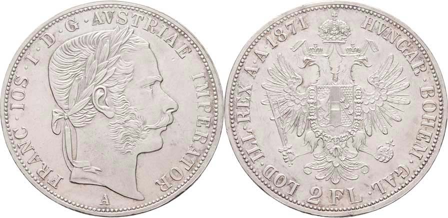 2 Zlatník 1871 A, 24.683g, nep.hr., nep.rysky, pěkná patina R!