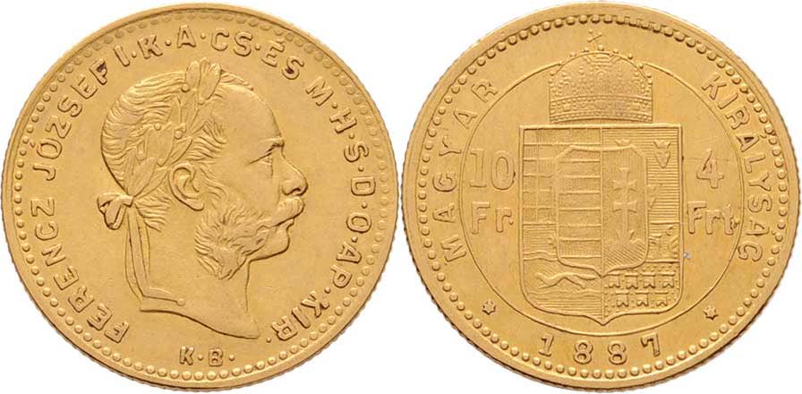 4 Zlatník 1887 KB (pouze 39.000 ks), 3.200g, nep.hr., nep.rysky, pěkná patina R!