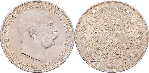 5 Koruna 1909 - Schwartz, 24.068g, vada materiálu v aversu, nep.hr., vl.rysky R!