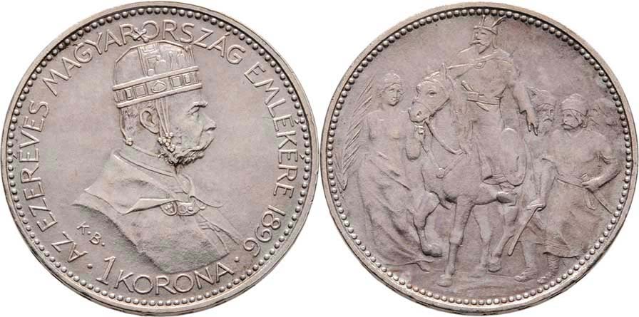 Koruna 1896 KB - mileniová, 5.011g, pěkná patina, téměř