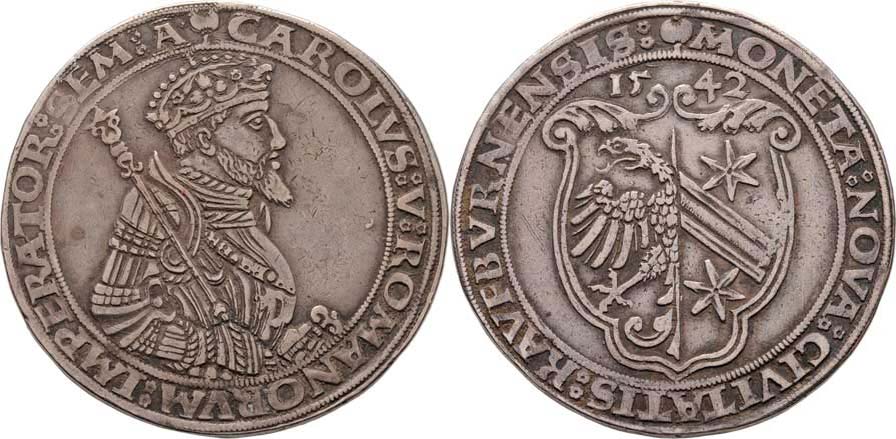 1/2 Tolar 1542 - s portrétem a titulem Karla V., podobný jako FW.III.13931, jako Reim.9991, 14.321g, nep.nedor., nep.hr., nep.rysky, pěkná patina RR!
