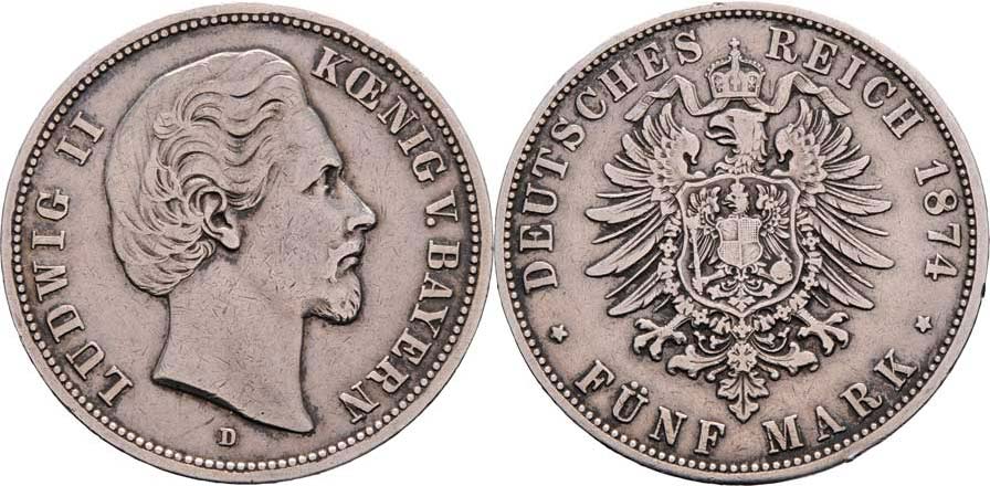 5 Marka 1874 D, KM.502 (Ag900, pouze 85.000 ks), 27.542g, hr., dr.rysky, pěkná patina