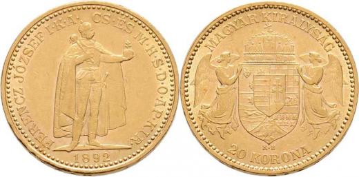 20 Koruna 1892 KB, 6.765g, nep.hr., dr.rysky, téměř