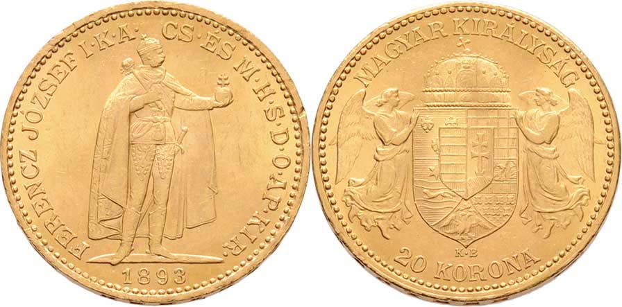 20 Koruna 1893 KB, 6.770g, dr.hr., vl.rysky, téměř