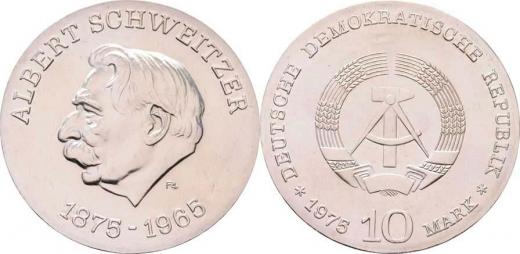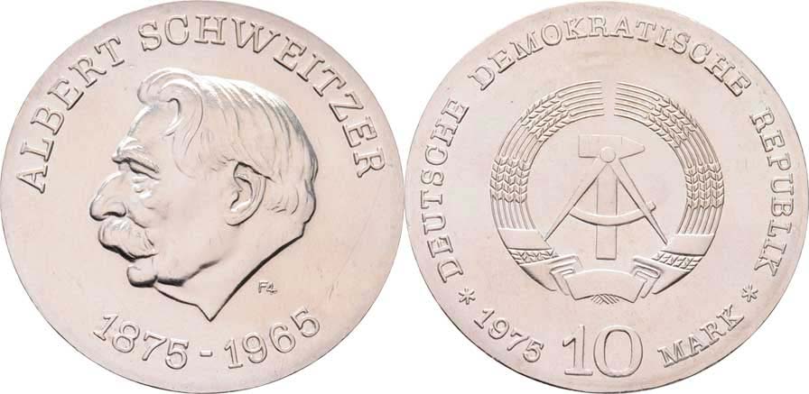 10 Marka 1975 - Albert Schweitzer, KM.56 (Ag625, 17.00g, 99.000 ks), kartička R!