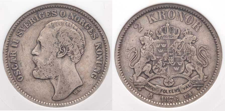 2 Koruna 1876 EB, KM.742, mince zatavena v etui ANACS (VF20), dr.rysky, patina