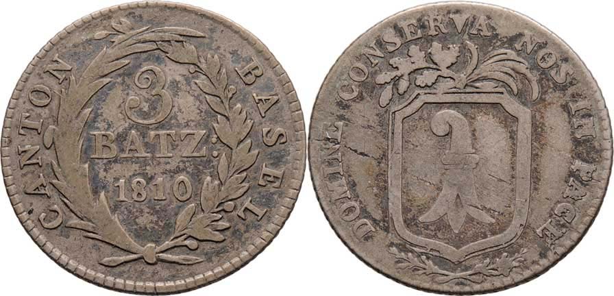 3 Batzen 1810, KM.198 (Ag), 3.658g, dr.vada mater., nedor., tmavá patina