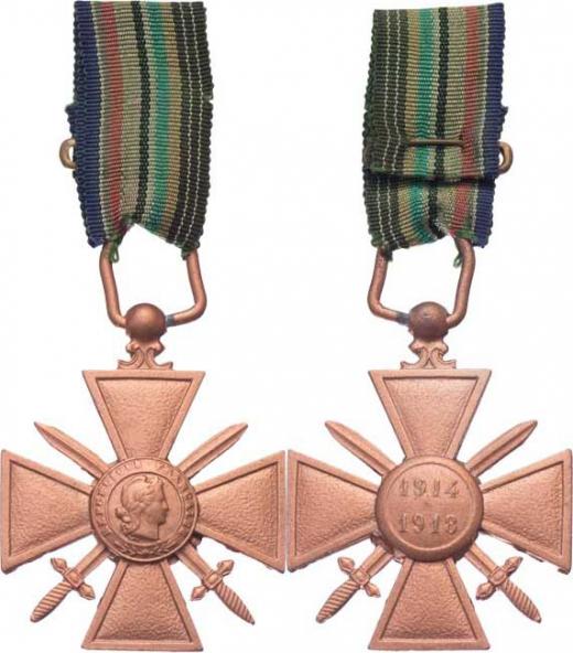 Francouzský válečný kříž 1914 - 1918, VFR.12d, BB.372, bez patiny, nepůvodní úzká stužka
