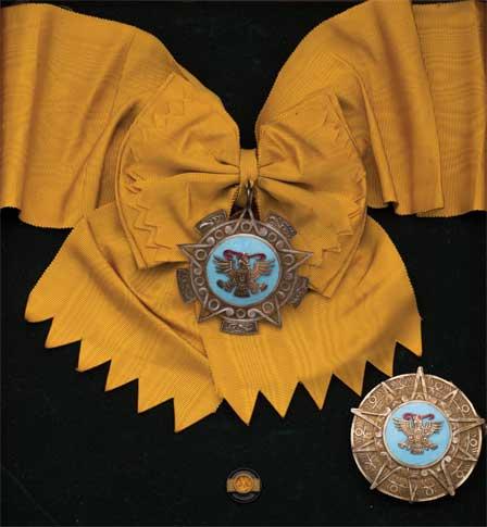 Řád Aztéckého orla (zal.1933) - I.třída - klenot na velkostuze, náprsní hvězda, Punc. Ag925, knoflíková miniatura, původní etue, BB.400+402, Tammann.648
