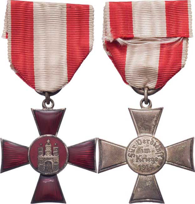 Kříž za válečné zásluhy (hansovní) 1914, BB.11, Nimmergut.688, dr.vada smaltu, původní stuha