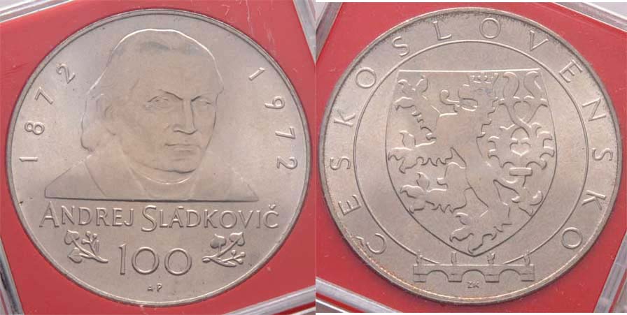 Andrej Sládkovič - AR medaile 1972 - portrét mírně zprava, vročení, nápis / český znak, Karlův most, opis, Sign., Nepunc., Ag 40mm, patina, původní etue
