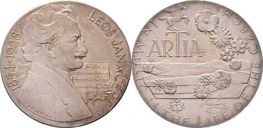 Leoš Janáček - Artia - V hudbě život Čechů (1977) - poprsí zprava, notový zápis, opis / emblém, krajina, květiny, opis, Sign., postříbřený bronz 38mm, 18.310g