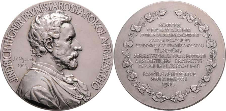 Jindřich Fügner (1822 - 1865) - pam.medaile 1903 - poprsí zprava, opis / 12-řádk. nápis ve věnci, Sign., Nepunc. Ag(?), 52 mm, 58.872g, nep.hr., nep.rysky