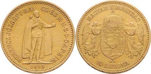 10 Koruna 1893 KB, 3.370g, mírně prohnutá, nep.hr., nep.rysky, pěkná patina