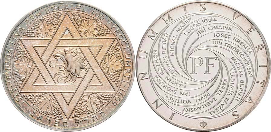 PF 2009 - Davidova hvězda, lví hlava, hrozny révy, opis / v paprscích jména vydavatelů, velké "PF" a opis, Sign., Ag925, 30mm, 13.694g, patina, etue R!