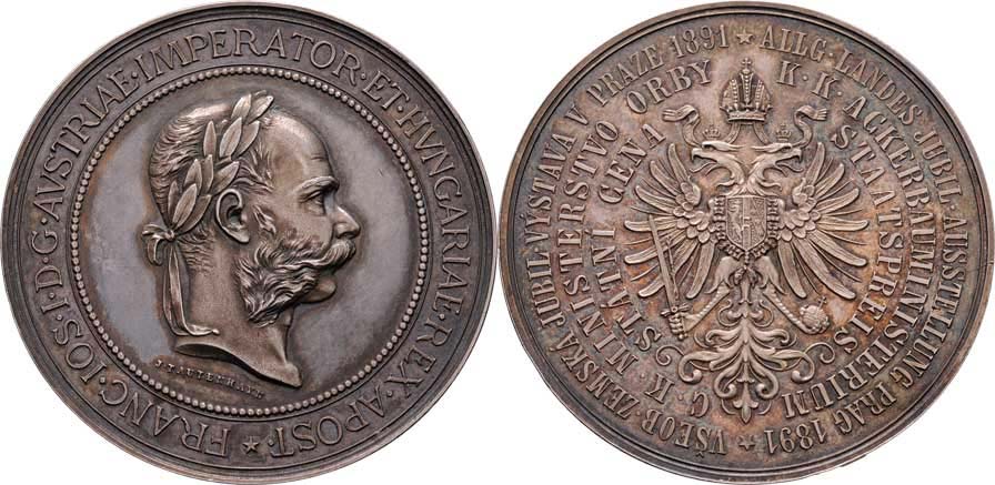 Tautenhayn - Státní cena ministerstva orby 1891 - hlava Fr.Josefa zprava, opis / císařský znak, trojitý opis, Sign., Ag800, 40mm, 34.979g, ŠFP.3b, patina