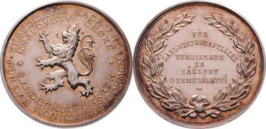 Kříž - Zemědělská rada pro Království české b.l. - český lev, dvojitý opis / česko-němec. nápis ve věnci Sign., Ag800, 42mm, 23.985g, jako ŠFP.6b, pěkná pat.