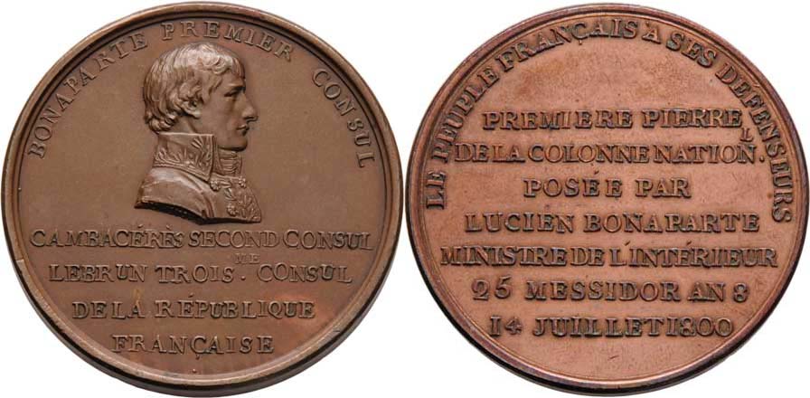 Havanne - Základ.kámen Velkého náměstí v Lyonu 1800 - poprsí zleva, opis a nápis/ 8-řádkový nápis ve věnci, Sign., Cu 43mm, 41.222g, Bram.61, nep.hr., pat., tém.
