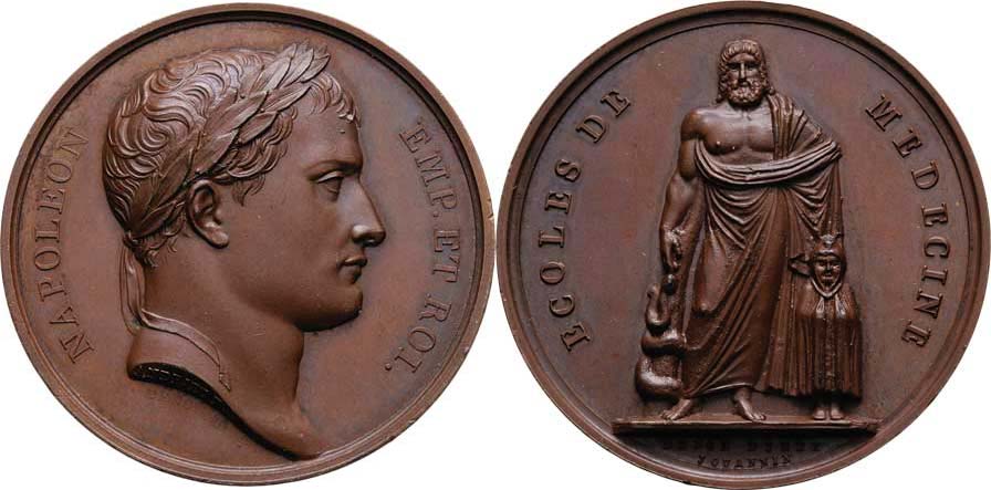 Andrieu, Jouannin a Denon - lékařská akademie 1805 - poprsí zprava, opis/ Aeskulap a student, opis, Sign., bronz 40mm, 37.328g, Zeitz.53, krásná patina