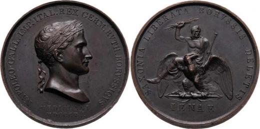 Manfredini - AE medaile na vítězství u Jeny 1806 - poprsí zprava, písmo / Jupiter letící na orlu, písmo, Sign., 40mm, 41.499g, Julius.1599, nep.hr., nep.rysky