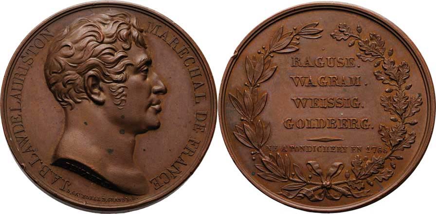 Cavedellgeanny - maršál J.A.B.Lawdelauriston b.l. - poprsí zprava, opis / 7-řádkový nápis ve věnci, Sign., 41mm, 37.776g, hr., nep.skvrnky, patina
