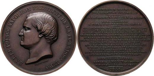 S.A.I. princ Napoleon - Světová výstava 1855 - poprsí zleva, opis / 21-řádkový nápis, Sign., bronz 36mm, 21.007g, nep.hr., nep.rysky, pěkná patina