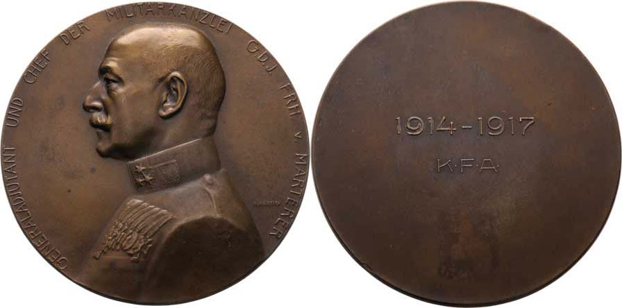 Hartig - generálporučík svob.pán von Marterer 1917 - poprsí zleva, opis / dvouřádkový nápis, Sign., bronz 65mm, 112.874g, hr., rysky, pěkná patina R!