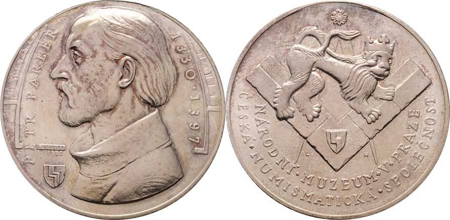 Havelka - 650 let narození Petra Parléře 1980 - portrét zleva, opis / český lev, měřidlo, úhelník, znak, dva opisy, Sign., postř.bronz 40 mm, BK.17