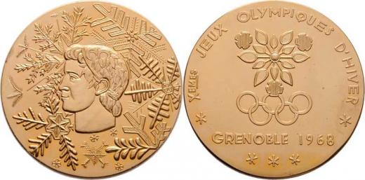 Grenoble 1968 (pozdější ražba) - X.zimní olympijské hry, Nesign., zlacený bronz 50 mm