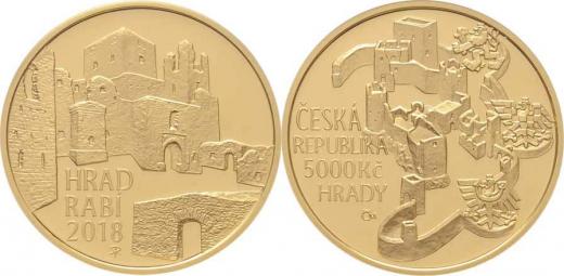 5000 Koruna 2018 - Hrad Rabí (Au999, 15.55g, 7.300ks), kapsle, etue, karta