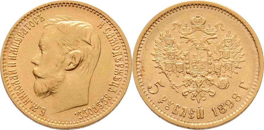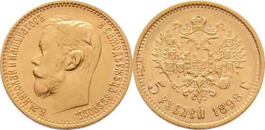 5 Rubl 1898 AG, Petrohrad, Y.62 (Au900), 4.291g, nep.hr., nep.rysky, patina