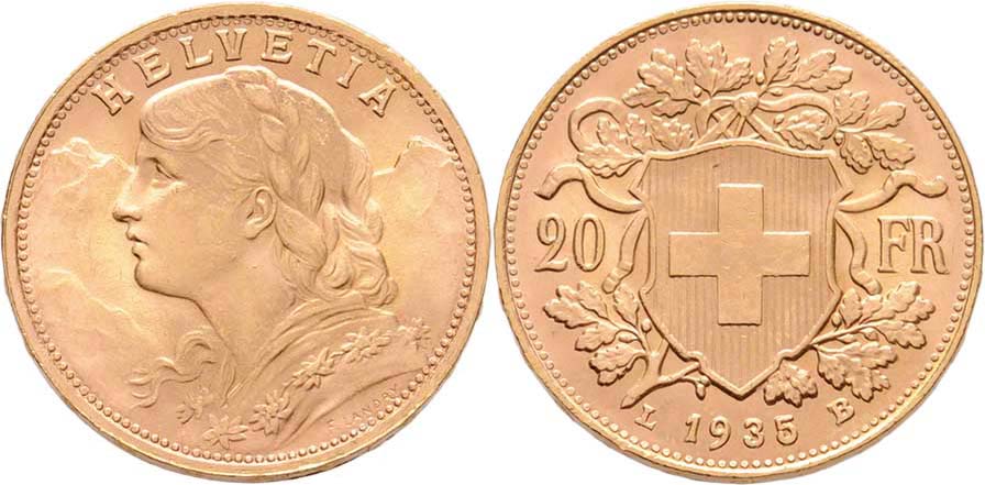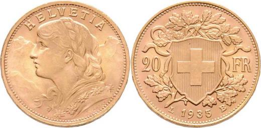 20 Frank 1935 L-B, Bern, KM.35.1 (Au900), 6.454g, nep.hr., nep.rysky