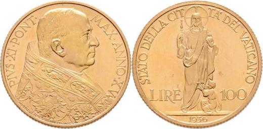 100 Lira 1936 - XV.rok pontifikátu, Y.10 (Au900, pouze 8.239 ks), 5.199g RR!