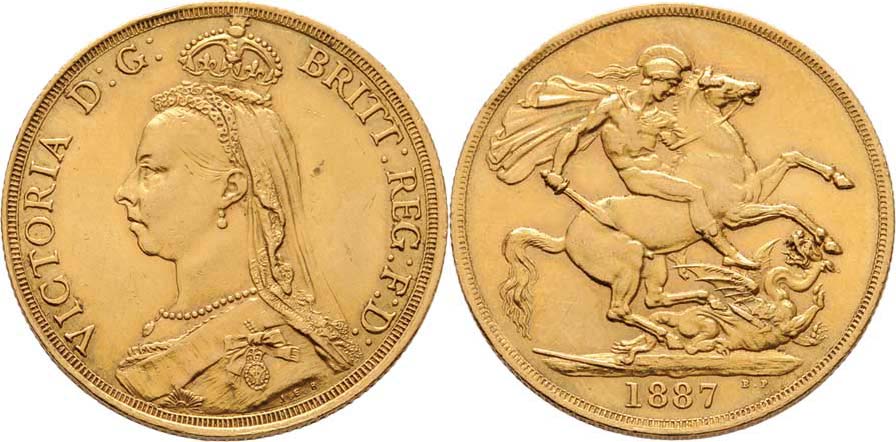 2 Libra 1887, KM.768 (Au917, pouze 91.000 ks), 15.958g, hrana, dr.rysky, pěkná patina R!