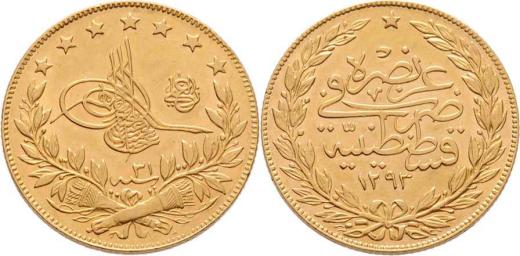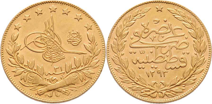 100 Piastr AH.1293, 31.rok vlády (= 1906), KM.730, 7.162g, nep.hr., nep.rysky, téměř