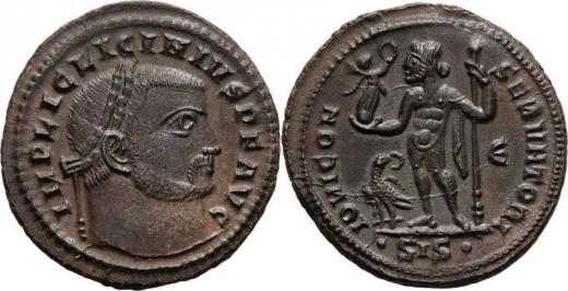 AE Follis, Rv:"IOVI.CONSERVATORI.", RIC.7.17, S.3698 - Siscia - 5.dílna - ražba z let 315 - 316, krásná patina