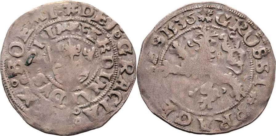 Pražský groš 1536, K.Hora-Jeptiška, Chv.C14/a.K, královská koruna, J.4, MKČ.70, 2.472g, nedor., skvrnky, patina