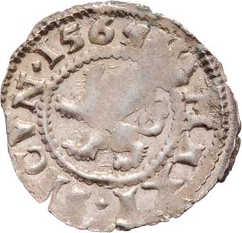 Bílý peníz 1565, K.Hora-Lídl a Karel, J.2b, MKČ.206, 0.250g, nep.nedor., pěkná patina, téměř