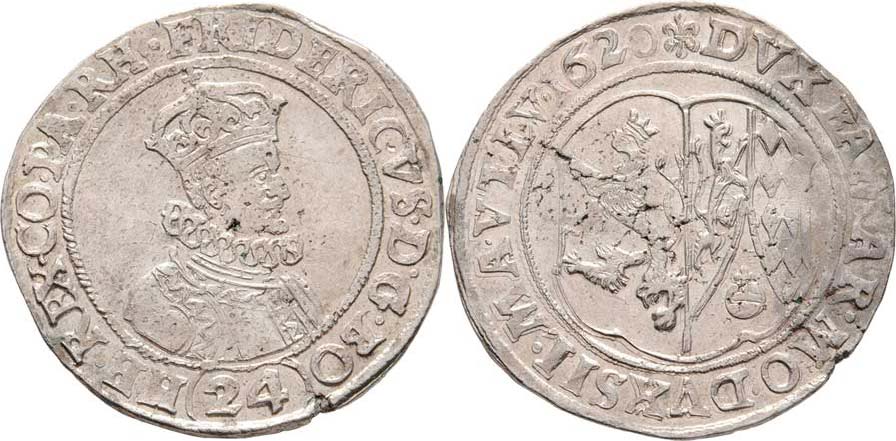 24 Krejcar 1620, Praha-Škréta, J.2, MKČ.656, 7.707g, dr.vady mater., nep.nedor., patina