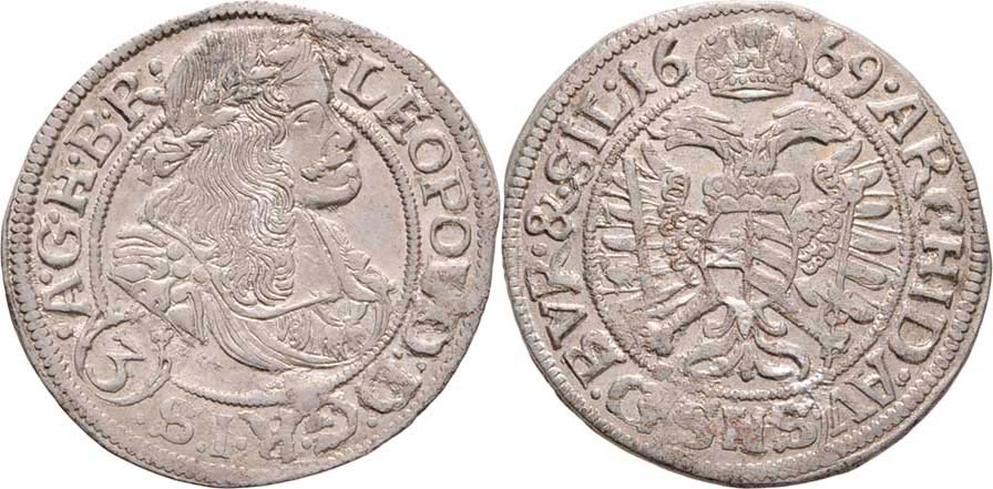 3 Krejcar 1669 SHS, Vratislav-Hammerschmidt, dělení opisů: "...I.S.(3).A.G.../...AV.(SHS).D.BVR.&.SIL." MKČ.1625, Nech.740, 1.586g,, dr.vada razid., pat. RR!