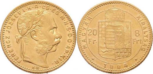 8 Zlatník 1884 KB, 6.438g, dr.hr., nep.rysky, pěkná patina, téměř