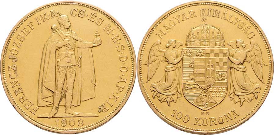 100 Koruna 1908 KB - původní ražba (pouze 4.038 ks), 33.371g, dr.hr., vlas.rysky, skvrny, patina RR!